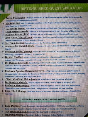 Some other distinguished past and present Nigerian leaders who are also scheduled to speak at the conference include: former Gov. Peter Obi, former Senate President, Anyim Pius Anyim; Gov Kayode Fayemi, Minister of Transport, Rotimi Amaechi, Human Right Lawyer Femi Falana (SAN) Hon. Abike Dabri-Erewa, President Buhari’s Spokesman, Mr. Femi Adesina, Dr Akil Khalifani, Amb. Gabriel Aduda, Dr Dakuku Peterside, Professor Appolos Okwuchi Nwauwa, Chief Mrs Moji Makinde, Dr Obadiah Mailafia, former INEC Chairman Prof. Maurice Iwu, and Engr Obed Monago.
